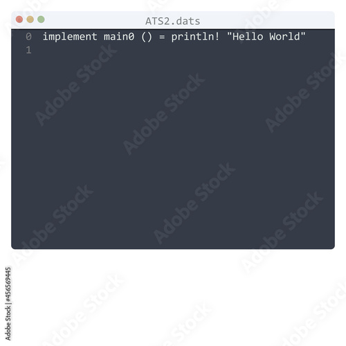 ATS2 language Hello World program sample in editor window