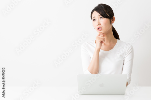 attractive asian woman using laptop