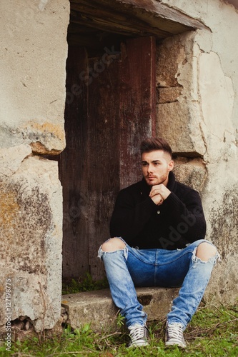 Attractive guy in a old house