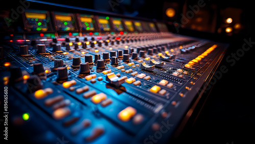 Audio Mixer Console with Knobs and Faders