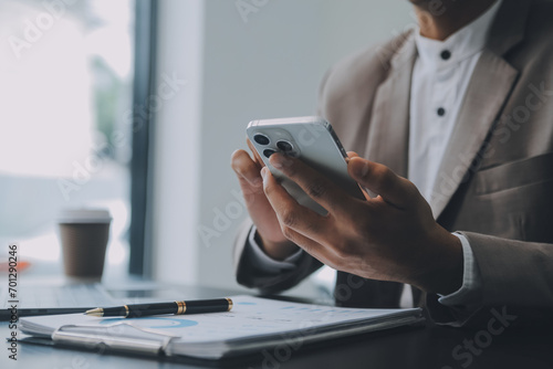 Audit concept,Administrator business man financial inspector and secretary making report calculating balance. Internal Revenue Service checking document.