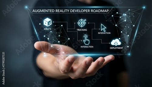Augmented reality developer roadmap hovering above a person's outstretched hand
