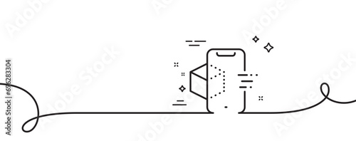 Augmented reality phone line icon. Continuous one line with curl. VR simulation sign. 3d cube symbol. Augmented reality single outline ribbon. Loop curve pattern. Vector