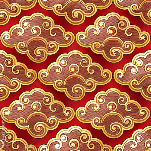 Auspicious cloud pattern in gold on red background, creating vibrant design