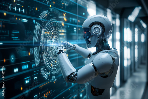 Automatic robot work with technology Artificial Intelligence, Generative AI