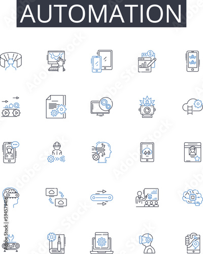 Automation line icons collection. Mechanization, Innovation, Modernization, Digitization, Computerization, Optimization, Streamlining vector and linear illustration. Rationalization,Standardization