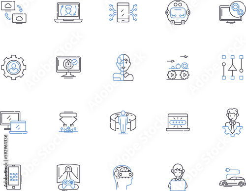 Automation outline icons collection. Robotic, Process, Machine, Automated, Control, Technology, AI vector and illustration concept set. System, Integration, Networking linear signs