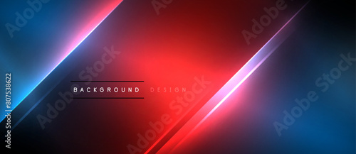 Automotive lighting inspired by neon with red and blue neon lines on a dark background. Featuring amber, violet, magenta, and electric blue hues, lens flare effect, and futuristic font design
