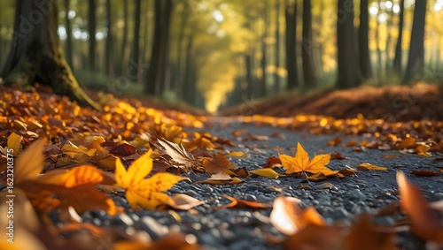 Autumn forest path covered with fallen leaves image