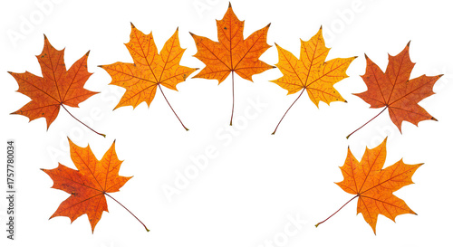 Autumn Maple Leaves Arranged in a SemiCircle.