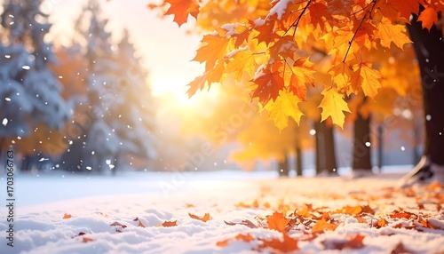 Autumnal snowfall on a park
