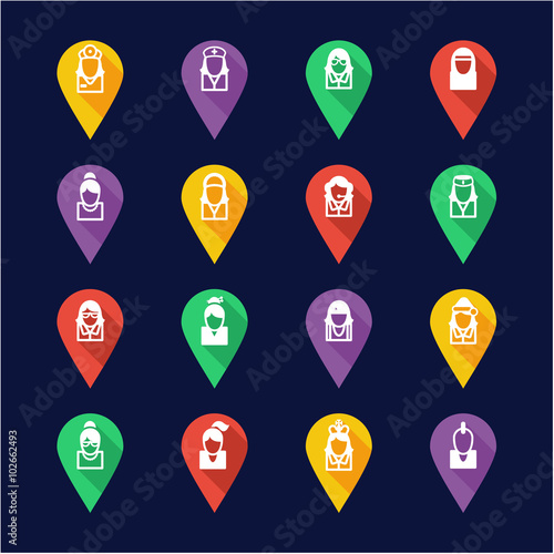 Avatar Icons Set 5 Flat Design Pin