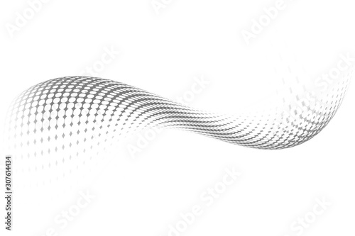 Awesome white and grey halftone wave background. Futuristic motion dots backdrop.