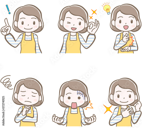 表情や仕草のセット、主婦の女性、母親の私服、B
