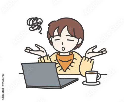 パソコンの前でお手上げ状態になった女の子B【ノートパソコン】