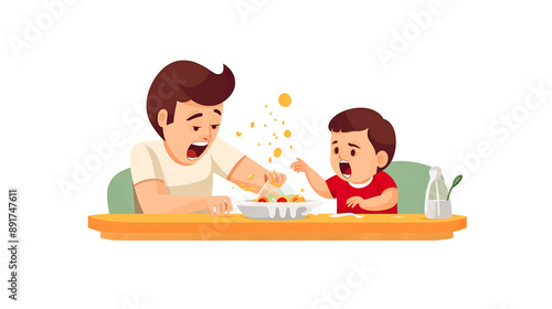 Baby crying at feeding time isolated on pure white background