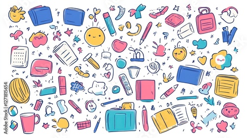 Back to school doodles. School supplies and educational elements. Hand-drawn vector illustrations isolated on a white background.