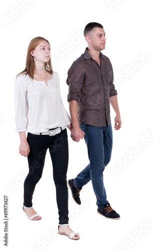 Back view going couple in shorts.