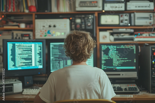 Back View of a Programmer Working on a Computer