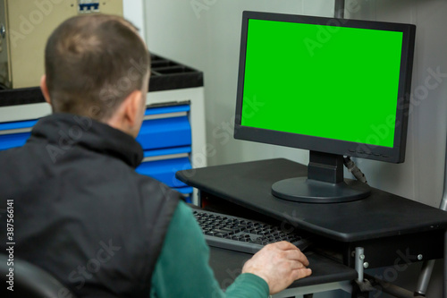 Back view worker working at computer