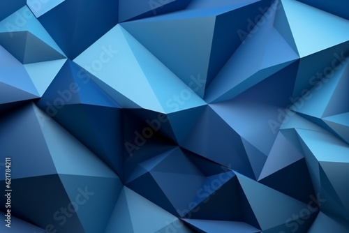 Background adorned with an array of blue triangular shapes in a 3D origami style. Ai generated