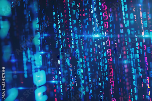 Background filled with cascading binary code, creating a digital and futuristic atmosphere, ideal for technology and programming themes
