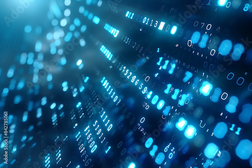Background filled with cascading binary code, creating a digital and futuristic atmosphere, ideal for technology and programming themes