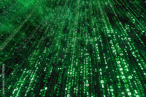 Background filled with cascading binary code, creating a digital and futuristic atmosphere, ideal for technology and programming themes
