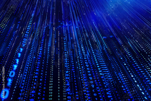Background filled with cascading binary code, creating a digital and futuristic atmosphere, ideal for technology and programming themes