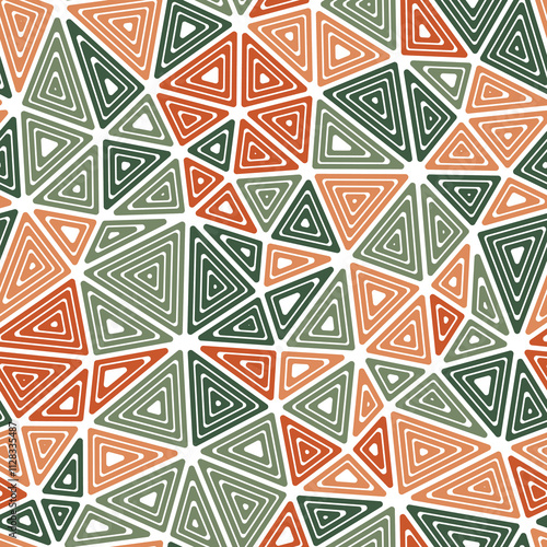 Background with triangles pattern. Multiple repeated inner triangles. Medium shape size. Multiple colors style. Seamless pattern. Classy vector tiles. Creative vector illustration.