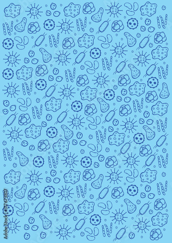Background with virus. Vector illustration with hand draw doodle elements.