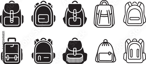 Backpack Collection of Silhouette outline vector on transparent background.