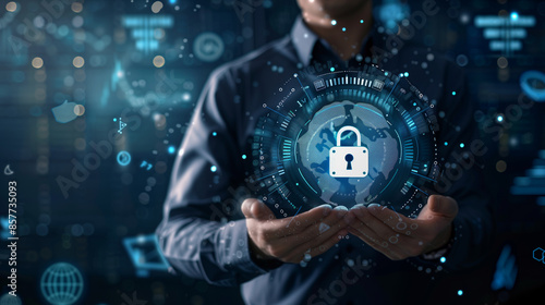 Backup: Businessman Holding Backup Icon and Global Network with Analyzing Technological Data, Data Security, Network Connection on Interface Background, Data Recovery, System Protection.