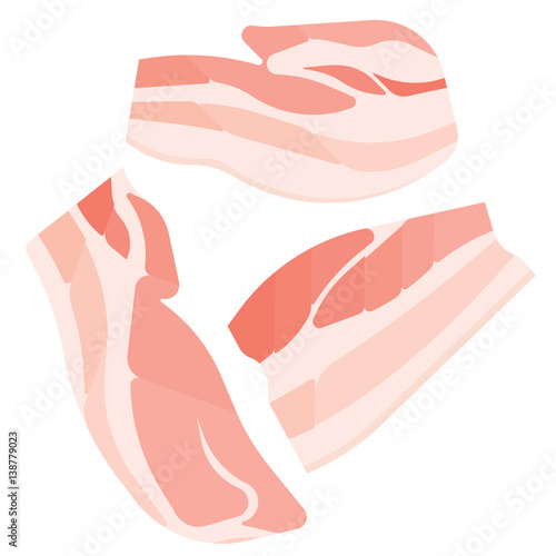 Bacon isolated on white background, flat illustration