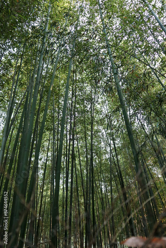 Bamboo forest in Arashiyama Kyoto. consists of rows of towering, sturdy bamboo