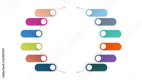 Basic circle infographic with 12 steps, process or options.