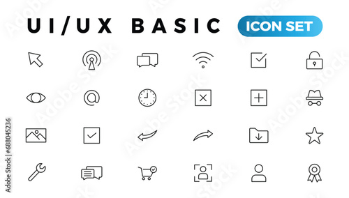 Basic User Interface Essential Set. ui/ux Line Outline Icons. For App, Web, Print. Editable Stroke.