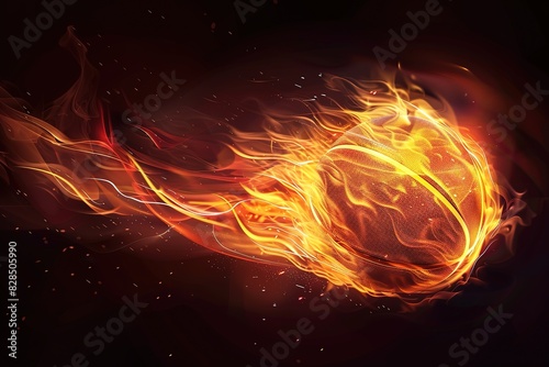 Basket ball on fire on black