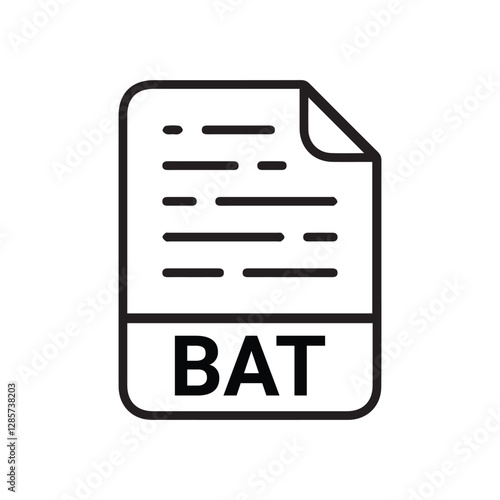 BAT file icon set. BAT file type symbol. File BAT format icon in black filled and outlined style isolated on transparent background.