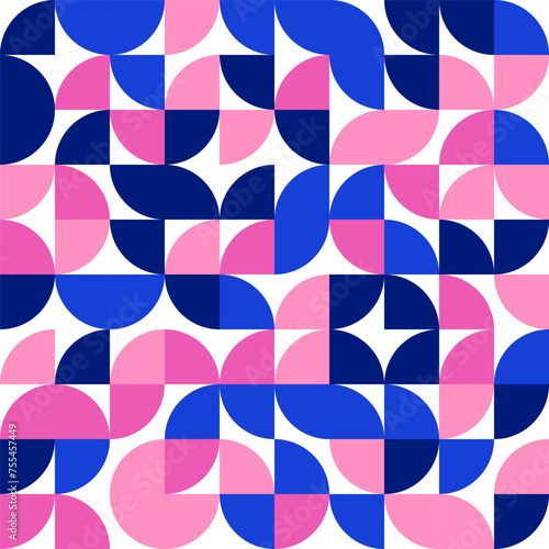 Bauhaus seamless pattern, geometric print, blue, pink. Vector modern trendy geometric pattern