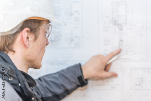 Bauleiter überprüft Pläne