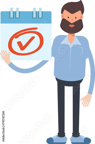 Beard Man Character and Check Mark Sign