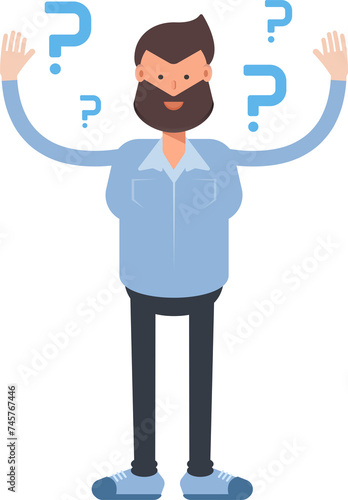 Beard Man Character and Question Marks