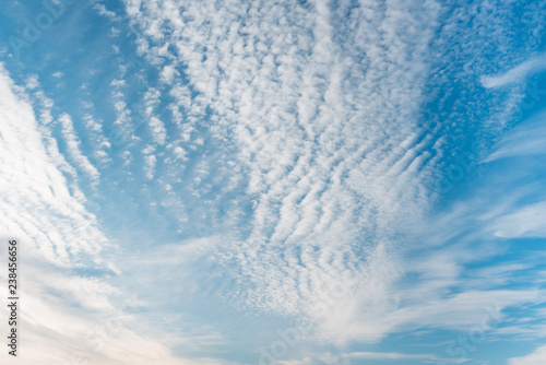 Beautiful blue sky with spindrift clouds.