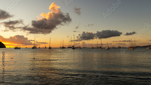 Beautiful cloudy sunset in the harbor in Martinique