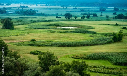 Beautiful fields landscape from hill.