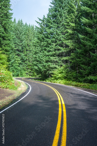 Beautiful Paved Road Meandering Through the Forest - Vertical