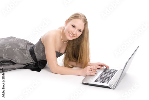 Beautiful smiley woman using a laptop computer