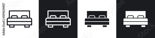 Bed icons set. filled and line illustration