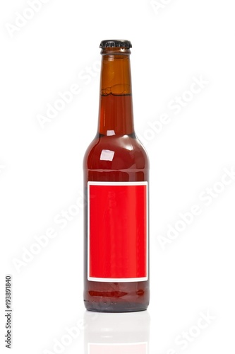 Beer bottle on a white